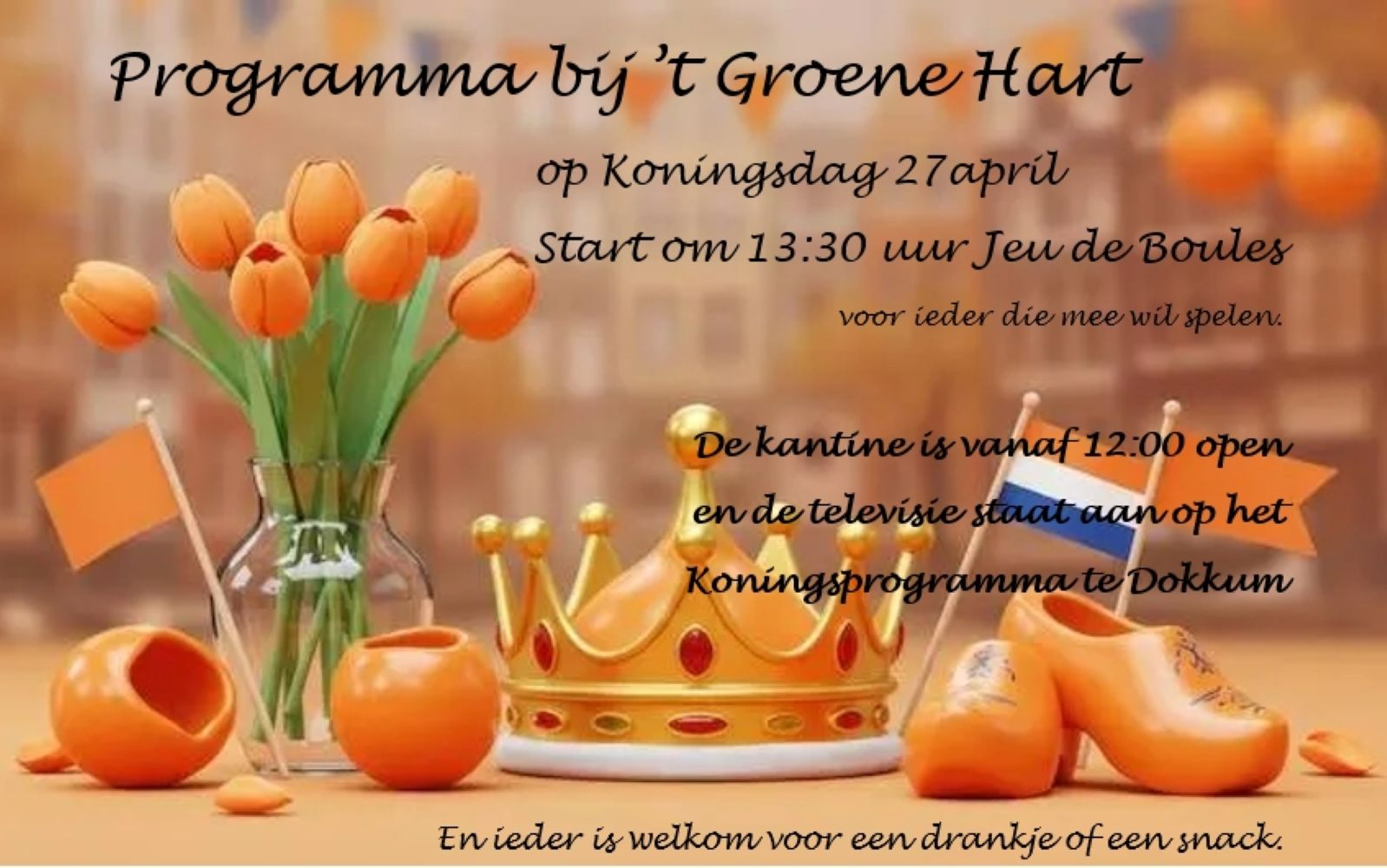 Koningsdag bij 't Groene Hart Maandag 27 april om 13:30 uur · Camping 't Groene Hart Ternaard Klik HIER voor volledige Folder....