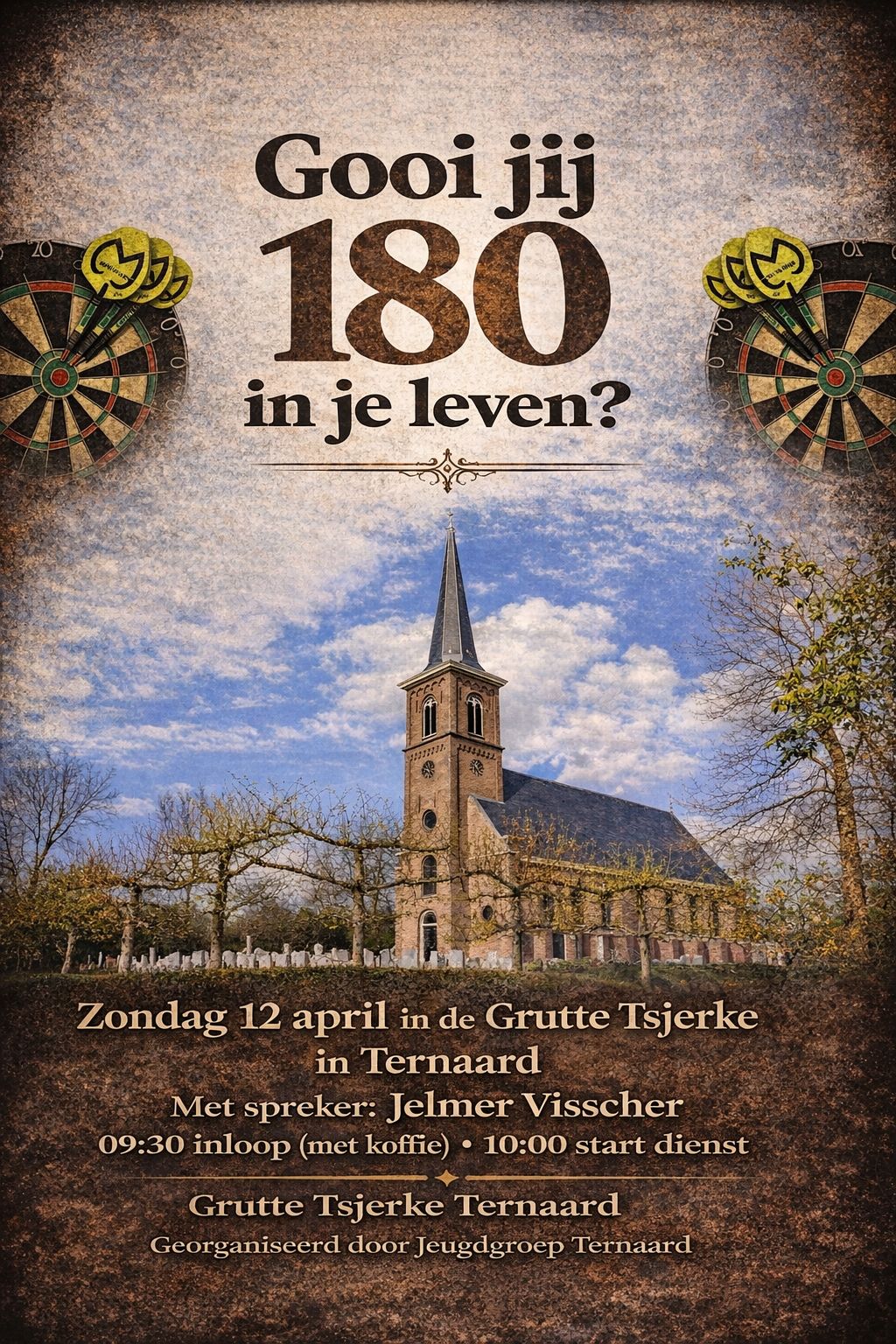 Op 12 april 2026 organiseert de jeugd van de PKN gemeente Ternaard een Open Deur Gezinsdienst. Dit is een dienst voor jong en oud met live muziek. Deze keer is de hele dienst georganiseerd en ingevuld door de jeugd zelf. Voor de kinderen is er een activiteit tijdens de dienst. Ook hele jonge kinderen mogen gezellig mee naar de dienst. Het thema is “Gooi jij 180 in je leven?” en de spreker is Jelmer Visscher. Centraal staan: ontmoeting met elkaar, delen in geloof, samen muziek maken en zingen. Heb jij al voor God gekozen? Voor een deel? Of helemaal? God vraagt je om je leven 180 graden te veranderen voor Hem. Nieuwsgierig wat dat betekent? Kom dan naar deze dienst!Locatie: Grutte of Antoniustsjerke, Tsjerkestrjitte 1 te Ternaard